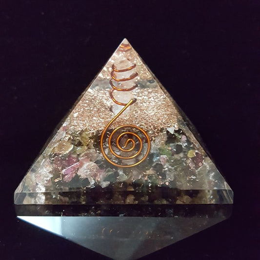 Pirámide Orgón Turmalina Multicolor 7 x 7 cm x lado x 5.5 cm alto