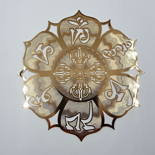 Placa "Om mani padme hum" con baño de oro. 10 cm