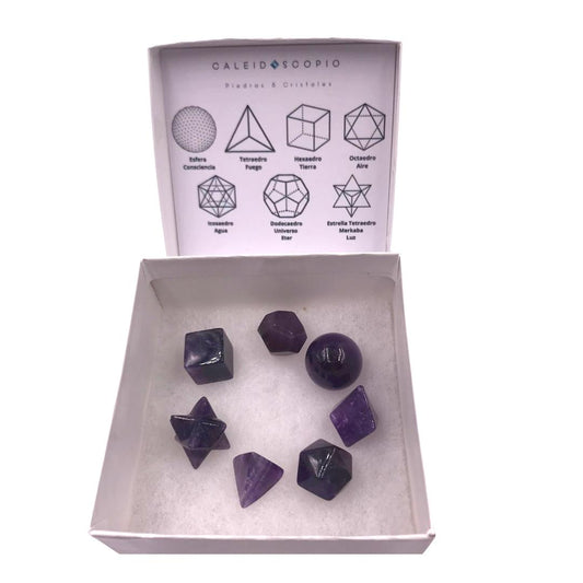 7 Sólidos Platónicos Geometría Sagrada Cuarzo Amatista 2 cm Aprox.