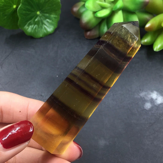 Fluorita Arcoíris natural vara en punta 92-94 gr 9.5 cm Aprendizaje Organización