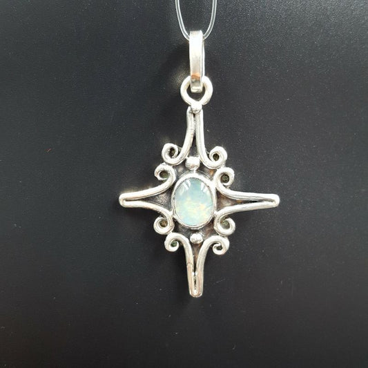 Dije de Plata 925 Estrella con Ópalo Blanco de fuego Dorado.