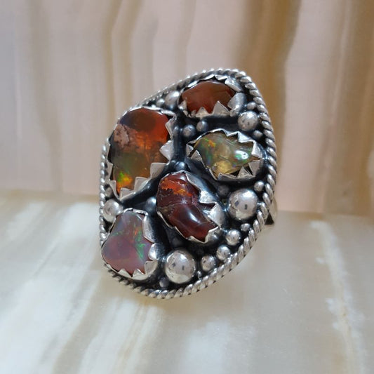 Anillo de Ópalo de Fuego Plata 925 Talla 6.5 Mod 364