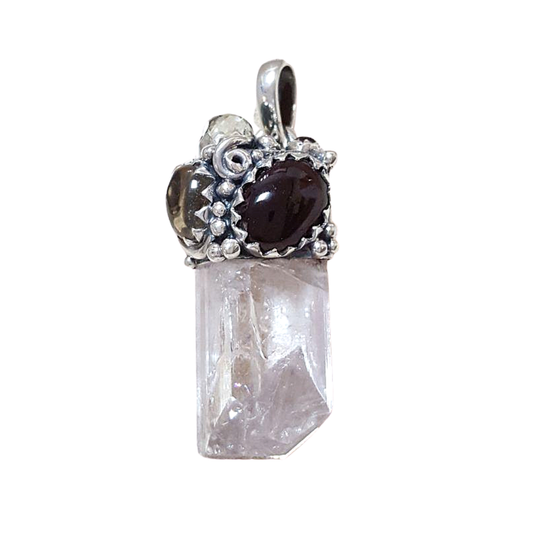 Dije punta Natural de Danburita Natural en Plata 925 con Citrino + Kunzita+ Granate