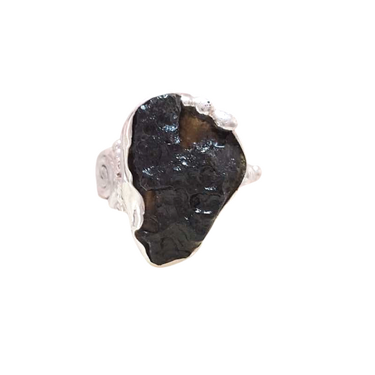 Anillo Tektita Negra Plata 925 Modelo 1473