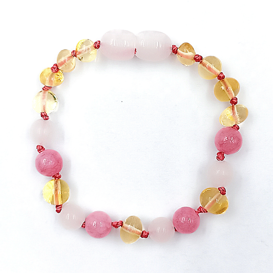 Pulsera Ámbar para Bebé con Jade y Cuarzo Rosa Certificado Dentición