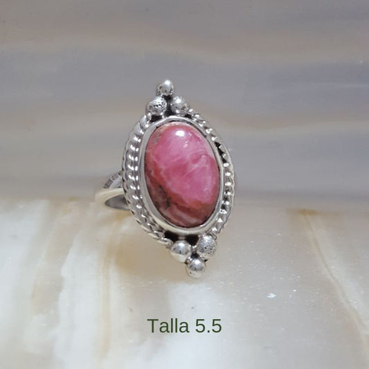 Anillo de Rodonita Plata 925 Talla 6.5 Modelo 340
