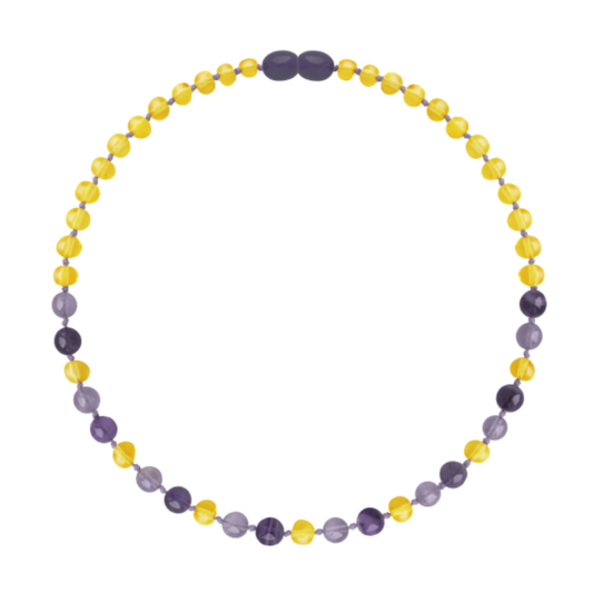 Collar Ámbar para Bebé con Jade y Cuarzo Amatista Dentición Cert. Autenticidad